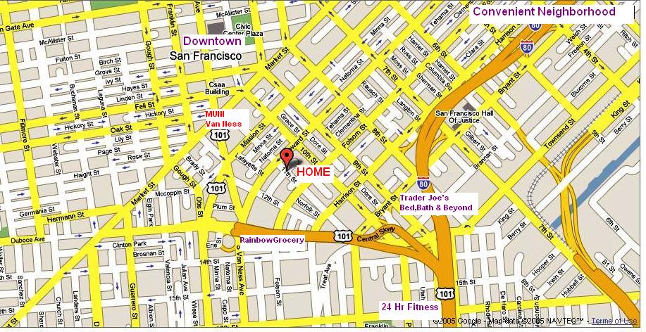 Located in downtown San Francisco, we are within walking distance to SF MUNI (subway) station. We are also surrounded by quality grocery stores, gym, department stores etc. for your everyday convenience. Short driving distance to major highway (CA101 and CA280) entrances. Also, our complex is located in the “Nightclub zone” for an easy night-out. Nearby venues include the famous Slim’s, San Francisco’s live music central.